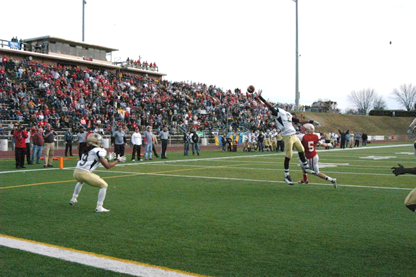 | Fort Hill falls in overtime Nov 27, 2011 CUMBERLAND — Unbeaten Perryville overcame five turnovers, stopped the vaunted Fort Hill ground attack and scored 20 unanswered points to knock off the Sentinels, 20-14 in overtime, in a Class 1A state semifinal battle of unbeatens Saturday afternoon. The win sends fourth-seeded Perryville (13-0) to Saturday’s noon championship game against Dunbar at M&T Bank Stadium. Top-seeded Fort Hill, which led 14-0 with nine minutes left in the third quarter, finished 12-1. Quarterback Gabe Sherrod orchestrated the comeback for the Panthers, who scored with nine seconds left in the third quarter, forced overtime with a touchdown with 1:31 to go in the fourth, and won it on their second play of the Kansas tiebreaker. Sherrod completed 15 of 28 passes for 153 yards and ran 14 times for 51 yards and a touchdown. He completed passes to seven different receivers. Joe Peaker ran 15 times for 73 yards and a touchdown. Dylan Clay led Fort Hill with 18 carries and 116 yards but the Sentinels mustered little else on offense. They had 16 yards rushing in the second half and only 33 yards passing for the game. “We couldn’t move the ball. They were very quick and aggressive and we didn’t account for everybody,’’ said Fort Hill coach Todd Appel. “They prepared very well for us. They played a great football game.” Seldom does a team win a game with five turnovers. It’s next to impossible in a late-round playoff game. But it happened in the season finale at Greenway, where the Panthers overcame two lost fumbles and three interceptions. “We had some uncharacteristic turnovers but a lot of that can be attributed to Fort Hill’s defense,’’ Perryville coach Chris Johnson said. “They are so disciplined and have tremendous team speed.” There could have been at least three other interceptions. Twice balls went in and out of hands of Fort Hill defenders and into the hands of Perryville receivers. Garrett Clay appeared to have intercepted a pass late in the fourth quarter, but Perryville’s Brian Matthews was awarded possession on a simultaneous catch ruling that gave the Panthers a 31-yard gain to the Fort Hill 13 during the game-tying drive. There were several other tipped balls, and almost every one fell Perryville’s way. The game-tying two-point pass deflected off Perryville’s Matthews but was grabbed by teammate Eddie Escobar in the end zone amid several Sentinels. In the final seconds of the fourth quarter, Mike Austin’s 45-yard pass was tipped by a Perryville defender and nearly snagged by Dylan Clay at the five. “I don’t know ... maybe they were living better than we were,” Appel said of the Panthers’ good fortune. “It was tough to see those tipped balls go their way. When the ball bounced, it bounced for them and not for us.” Fort Hill scored on its first possession, moving 60 yards in nine plays, with Dylan Clay scoring on a one-yard sneak. The Sentinels had a golden opportunity to add to their lead just before the half. But after an interception by Kaleb Miller and 67-yard run by Dylan Clay gave Fort Hill first-and-goal at the nine, Perryville stopped Ryan Briner on fourth-and-goal 21 seconds before halftime. “That was biggest play in the game, and there were a couple of big ones,” Johnson said. “That was a turning point because if they go in up 14-0, it’s a different ball game. It would have been a lot more difficult for us.” The Panthers’ first-half possessions read like a nightmare: lost fumble; interception; interception, half. It continued after halftime, when Lance Fullwood forced a fumble on the second play of the third quarter that was recovered by Garrett Clay at the Perryville 25. After a 24-yard pass from Mike Austin to Dylan Clay, Garrett Clay scored off left tackle on a three-yard run to make it 14-0 with 9:08 left in the third quarter. But Perryville took over from there. After Jacob Morgan recovered a Dylan Clay fumble near midfield, the Panthers went 49 yards in seven plays, the big gainer a 19-yard pass which fell out of the grasp of Marcus Lee and into the hands Nehemiah Wallace at the Fort Hill 10. Peaker scored on a five-yard run but a run failed for the conversion, leaving the score 14-6. The Panthers went 70 yards in 11 plays to tie the game in the fourth, with Sherrod scoring on a one-yard sneak with 1:31 left before his tipped passed was coraled by Escobar for the two-point conversion. The drive included the Matthews-Garrett Clay possession battle that went for a 31-yard reception for Perryville. The Panthers, when the half was done, had possession of the ball for 16 of the 24 minutes. Fort Hill ran just seven plays in the third quarter. Fort Hill had possession first in the overtime, and had passes fall incomplete on first, second and fourth downs. Dylan Clay had a six-yard run on third-and-10. “I don’t think the confidence level was there going into overtime,’’ Appel said. “We didn’t think we could run the ball, and that’s what led us to pass it in overtime. “We weren’t able to run the ball the whole second half, and except for the one pass that led to a touchdown, we didn’t move the ball much at all. They had some great athletes. Sherrod was a tremendous athlete.” Perryville let Sherrod handle things during its overtime possession. He rolled right for eight yards then followed 6-3, 325-pound center Daryll Johnson on a two-yard sneak into the end zone to end it. “Football is such a game of momentum. You ride the highs and lows. Once we scored and started to move the ball again in the second half, I think there was a little bit of doubt creeping in because they hadn’t really been challenged all year, and there’s a reason why: they are a great football team. “We just made enough plays in critical situations to turn the tide. Our kids never quit ... to battle back against one of the best high school football teams I’ve seen in a long time is really somethi