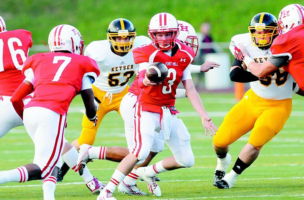 Sep. 13, 2013 CUMBERLAND — Sometimes it’s good to have a short memory. And sometimes, it’s not. The Fort Hill Sentinels exorcised some bad memories from a year ago on Friday the 13th, roughing up Keyser 24-7 in front of a near capacity crowd at Greenway Avenue Stadium. Hunter Squires scored two touchdowns, Ty Johnson scored the other, and Cody Dolly came up with two big defensive plays in a pivotal third quarter as the Sentinels got a little revenge for a 29-point drubbing at Keyser a year ago. “I wrote ‘51-22’ on the board in the locker room,’’ Fort Hill coach Todd Appel said of a simple reminder to his players, as if they needed one, of what happened a year ago in a series that Fort Hill now leads 38-7-1. The Sentinels (2-0) grabbed an early lead, never trailed, and scored 17 unanswered points in winning a foul-filled evening. There were 26 accepted penalties — 13 on each team — and 216 penalty yards marched off on a perfect night for football. Appel showed confidence in his offense, and defense, too, by gambling on fourth-and-one at his own 15-yard line midway through the first quarter. While most may have believed the Sentinels would attempt to draw Keyser offsides, Squires took the snap and ran five yards on a sneak for a first down. “They were moving the ball on us and I didn’t want them to get the ball right back,” Appel said. “We have confidence in Hunter (Squires), and he made the audible and the right call.” Later, Alex Barnes ran for 14 tough yards to the Keyser 47, and Squires hit Johnson for a 25-yard pass to get to the 28. Squires ran 19 yards out of the shotgun to get to the eight, and after a seven-yard run by Johnson, Squires scored on a one-yard sneak to cap a 94-yard, 14-play drive that ate up 6:07. It was set up by a Fort Hill defensive stand and interception by Rashaan Shives on fourth-and-goal from the Sentinels’ 13. Keyser (1-2) countered quickly. Blake Ravenscroft returned the ensuing kickoff 54 yards to the Fort Hill 41. Danny Fife had runs of five and 27 yards to get to the 10 and Garrett Crites scored from there, following the block of Drew Roy into the end zone Although Keyser had moved the ball the first quarter was nightmarish for the Golden Tornado, which had five penalties and an interception in its first series. A fumble, recovered by Fort Hill’s Trenton Swan, in the second quarter led to another Fort Hill touchdown, a six-yard run by Squires with 2:01 left in the half. “We had plenty of momentum and moved the ball but you can’t shoot yourself in the foot like we did, especially against a good team like Fort Hill,’’ said Keyser coach Sean Biser. “The fumble was an incomplete shuffle pass out of our jet sweep, but the officials didn’t want to listen when we argued that. “We had some illegal formation penalties that we didn’t agree with. I thought we were controlling the line and ball in the first half, but a couple of mistakes killed us.” The Tornado, down 14-7 at halftime, began the second half as it did the first, marching deep into Fort Hill territory. A drive that included 11- and 18-yard runs by Fife got the Tornado to the Fort Hill 12, where Dolly and the defense made another red zone stand. Dolly stopped Fife for no gain at the eight, then took down Ravenscroft for a five-yard loss at the 13 on third-and-six. Johnson batted down a pass on fourth down and the Sentinels took over the ball, and game, from that point. After an exchange of punts, Barnes escaped trouble at the line of scrimmage, got a big downfield block from Johnson and dashed 49 yards to the Keyser six. Johnson scored on the next play, getting a nice block on the corner from Barnes, to make it 21-7 with 46 seconds left in the third period. A seven-minute possession in the fourth quarter ended in a 35-yard field goal by Chris King that made it 24-7 with 2:18 to go. “This a big win for us because that’s a good Keyser team, and a team that beat us last year,’’ Appel said. “They’ve got experience and a lot of talent and are going to be tough down the stretch. Our guys up front like Preston Bryant, Brennan Carlin, Michael Wright, Cody Arigo, Josh Roberts, Rashaan Shives ... they’re big kids and played with aggressiveness. When we want to be, we can be physical, too, and I think we wore on them. We had a few big plays but for the most part were grinding them out and just kept plugging away at them.” Fort Hill led in second-half yardage 137-54, and outgained the Tornado for the game 275-177. “I thought our defense played excellent,’’ said Biser. “I can’t say anything about the effort, on offense or defense. It was just that at times we were our own worst enemy. You have to be able to overcome calls you don’t agree with and can’t have the mental errors we did. The penalties moved short yardage plays to long yardage, and forced us do to some things we didn’t want to do.” Fife led all rushers with 15 carries and 89 yards for Keyser. Barnes had nine carries and 87 yards and Dekarai Darr 15 rushes and 69 yards for Fort Hill. Keyser plays at Northern on Friday. Fort Hill will host Central Tech (Pa.) next Saturday at 5:30.